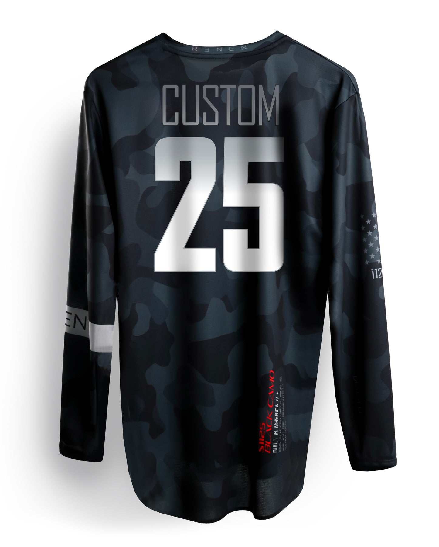 At RENEN we offer the ultimate - Sublimation graphic name/number customization, just like the Factory Pros. Our unique process means you don’t feel the graphic, it is fully breathable, and won’t ever crack or peel. Your name and UP TO THREE DIGIT number are perfectly sized and placed in our signature, exclusive RENEN font.