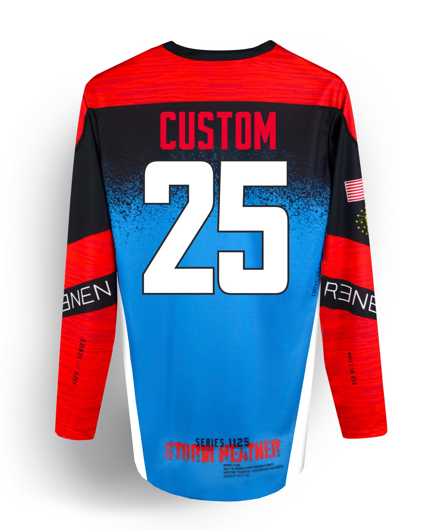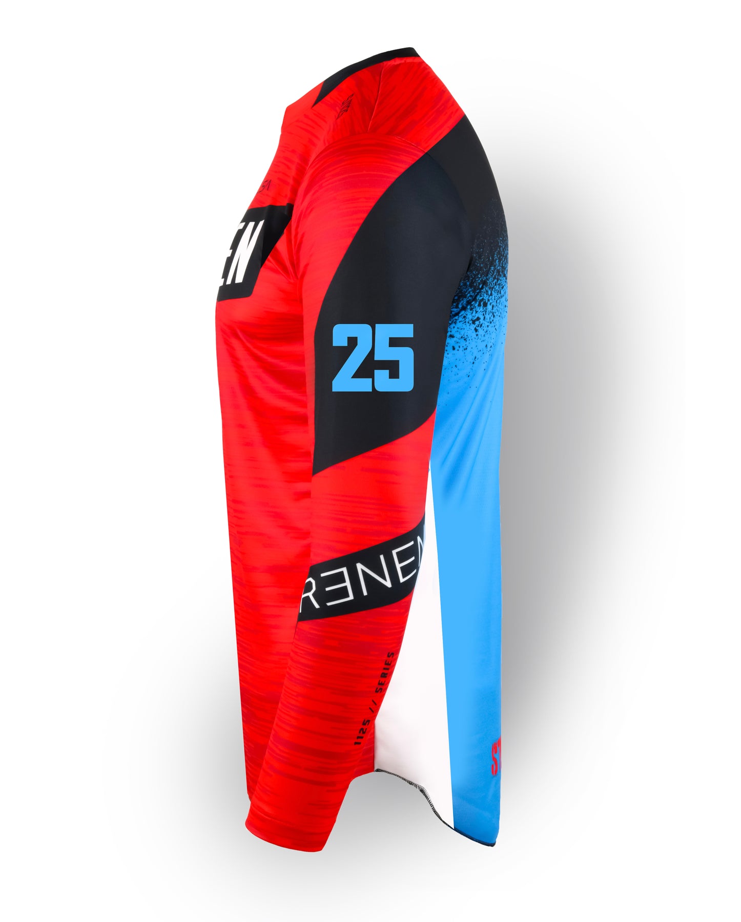 At RENEN we offer the ultimate - Sublimation graphic name/number customization, just like the Factory Pros. Our unique process means you don’t feel the graphic, it is fully breathable, and won’t ever crack or peel. Your name and UP TO THREE DIGIT number are perfectly sized and placed in our signature, exclusive RENEN font.