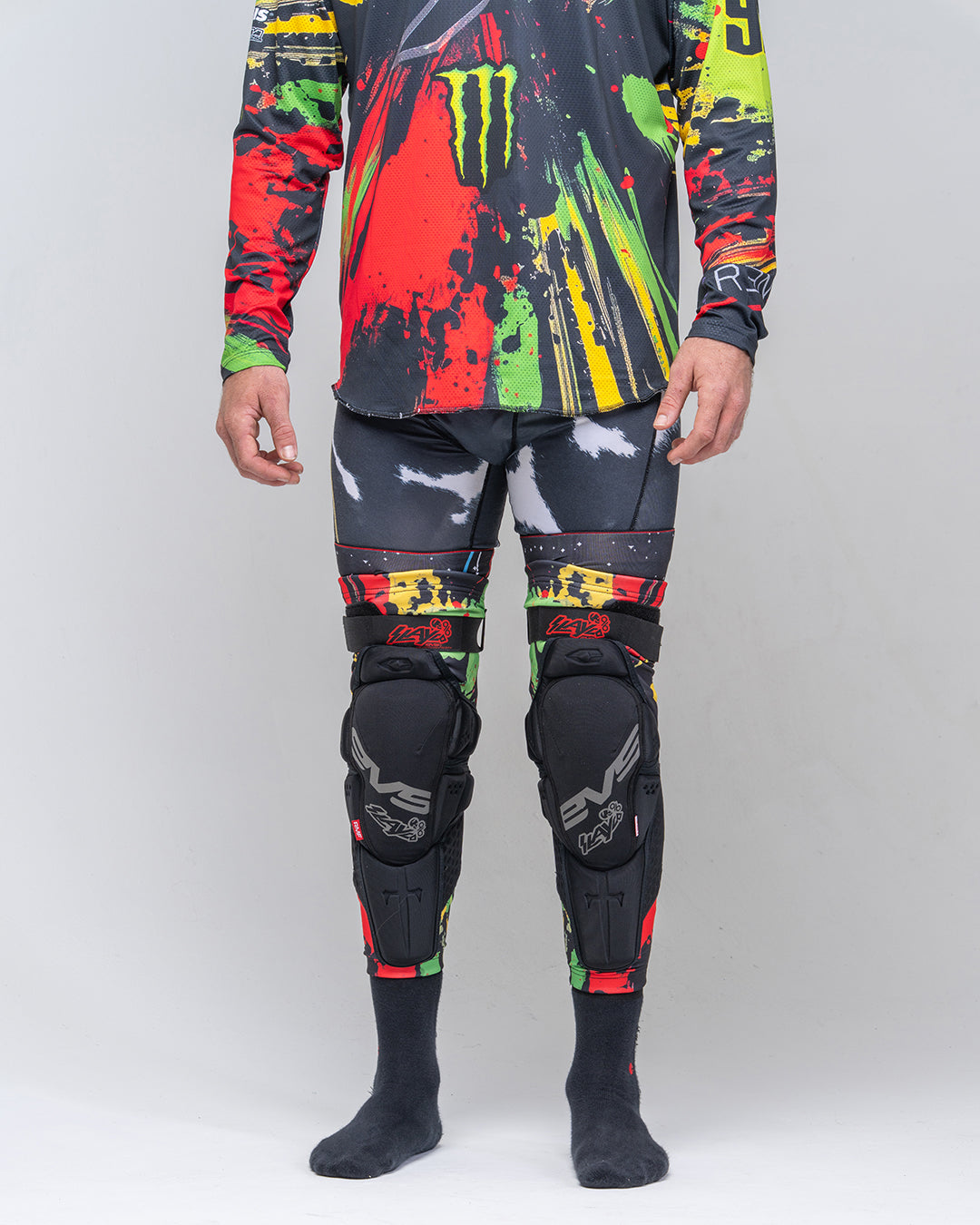 The Slayco96 Knee Guard returns with a bold new look—Explosion, an exclusive colorway created through the ongoing collaboration between EVS Sports, Renen, and freeride icon Axell Hodges. Built on the trusted Slayco96 protection platform, this new graphic delivers high-impact style without sacrificing performance. Designed with splashes of red, green, and yellow over a deep black background, the Explosion colorway captures the raw energy and unpredictable attitude of modern freeriding. Developed under the creative direction of Renen and Pete Fox, this design ignites a fresh visual edge to one of EVS’ most popular knee guards.